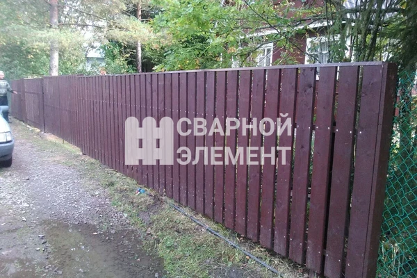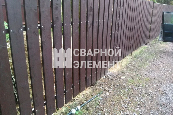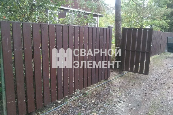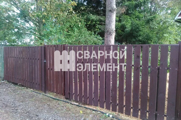 • Каркас забора: Лаги 40*20*2 мм, -2 шт на пролет, cтолбы 60*60*2 мм, пролет 3 метра, метод установки — бутование.