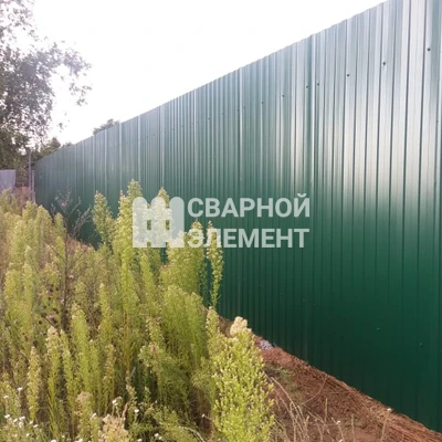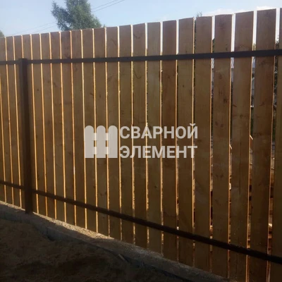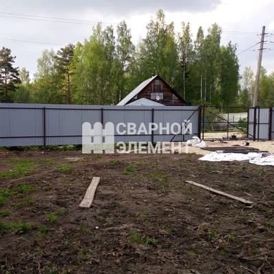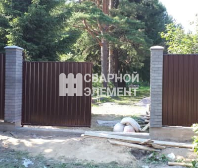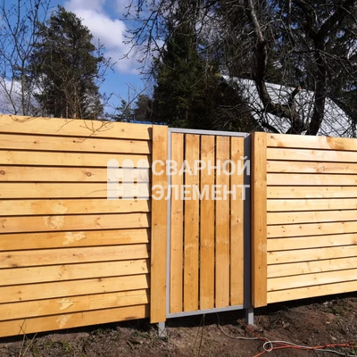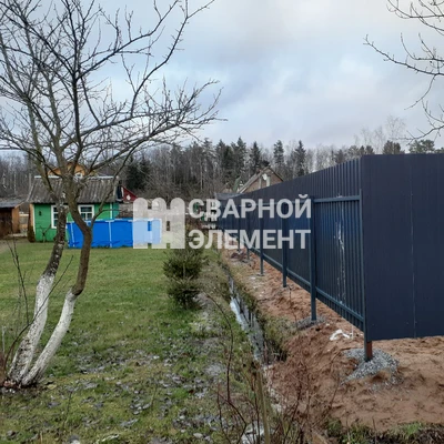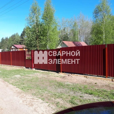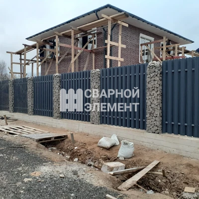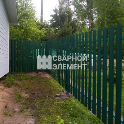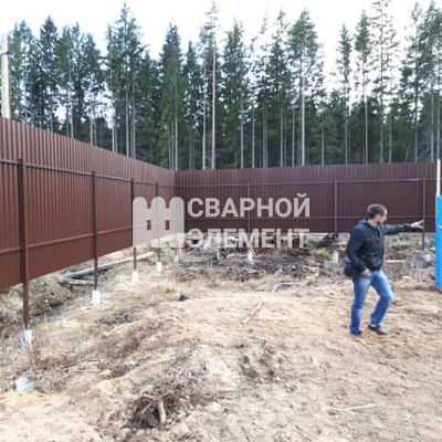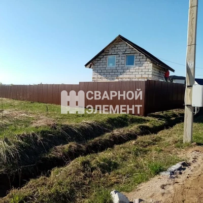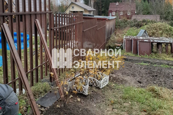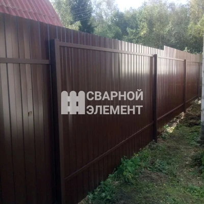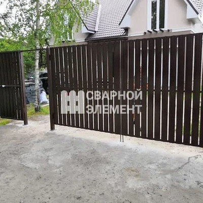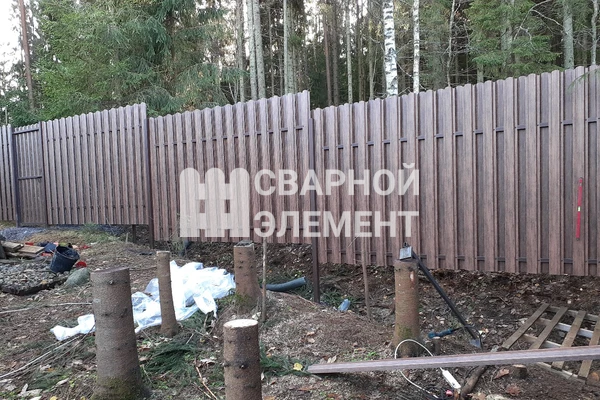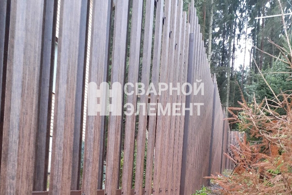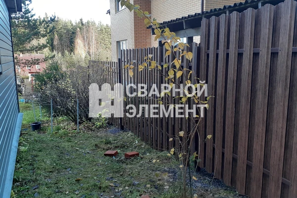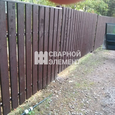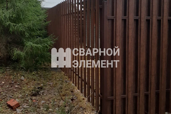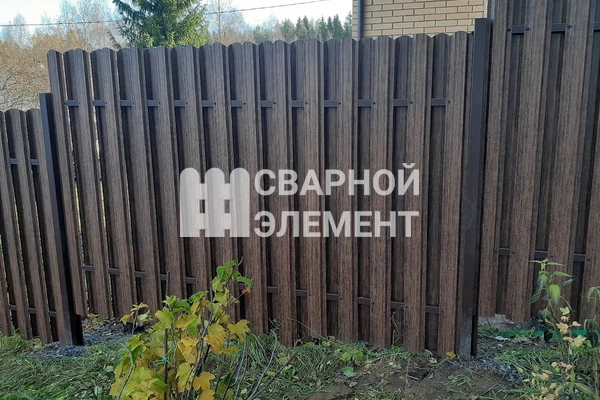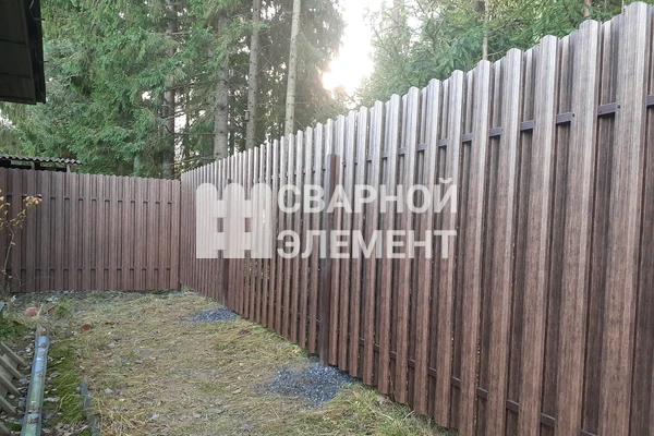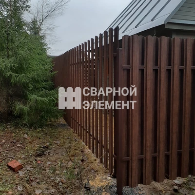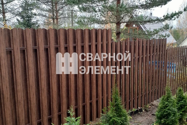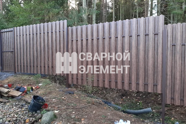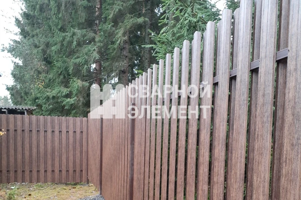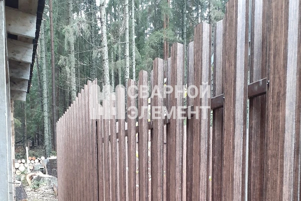 • Забор из металического штакетника шахматка покрытие ППК под дерево с калиткой 55 п.м.