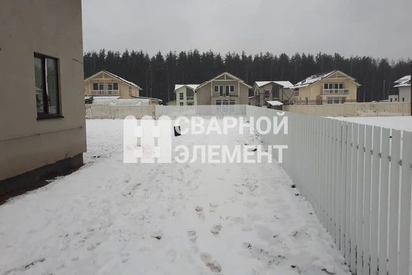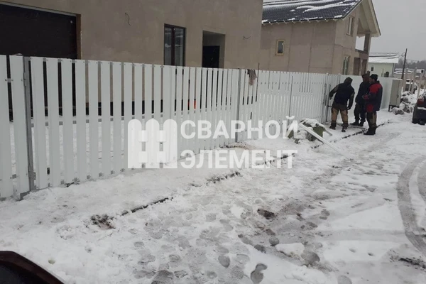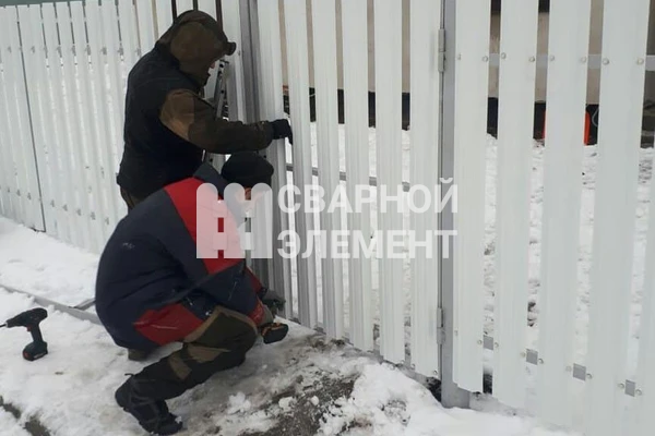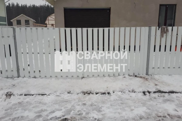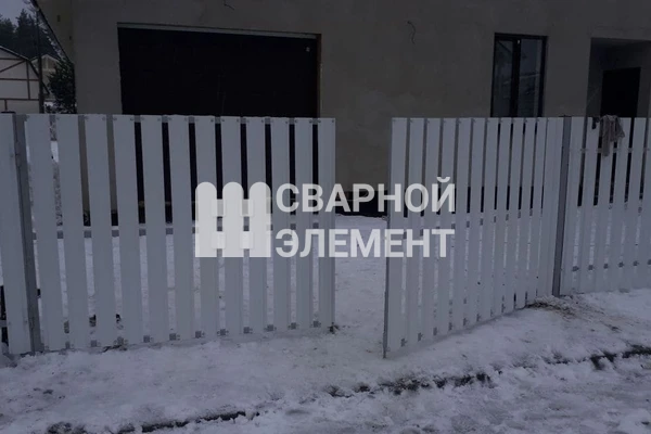 Забор из белого металлического штакетника