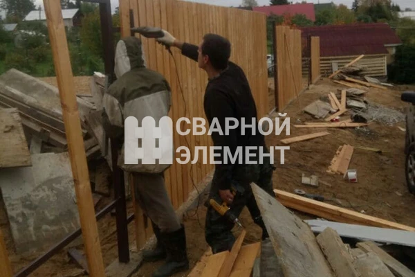 • Каркас забора: Сетка Гиттер — столбы 50*50*2 мм, Деревянный забор, столбы 60*60*2 мм, лаги 40*25*2 мм.