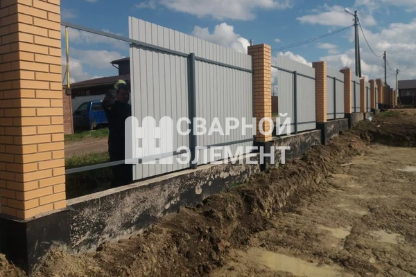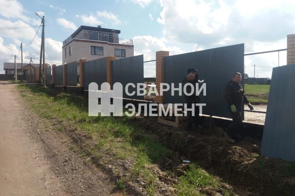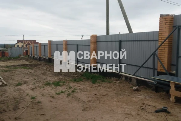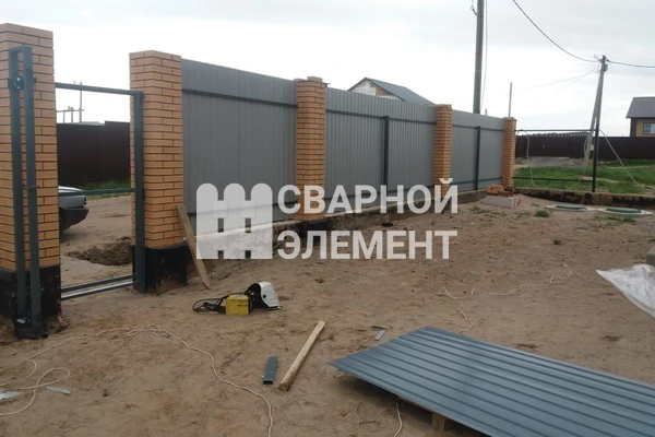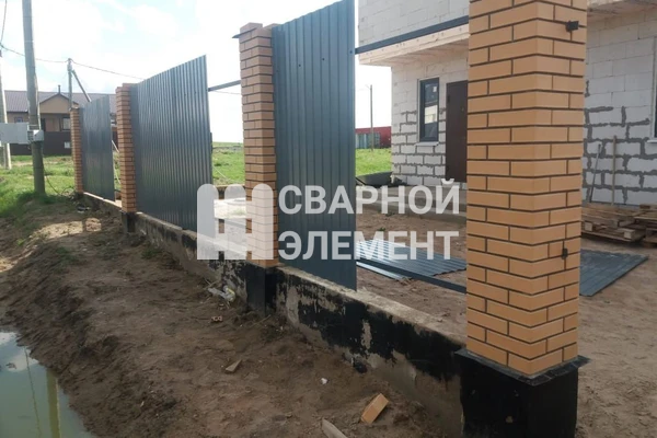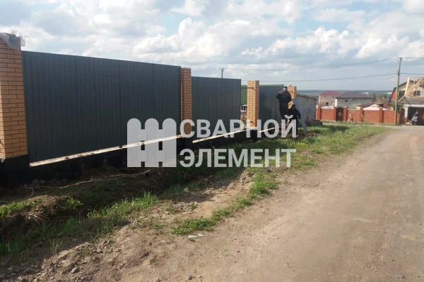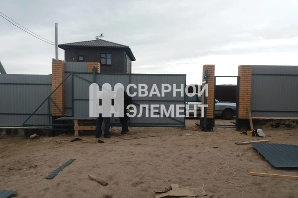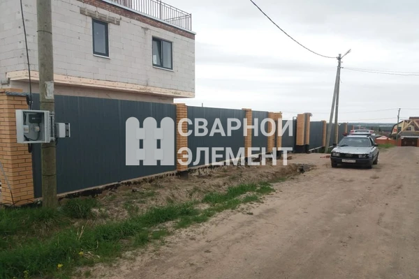 • Забор из профлиста RAL 7031 с откатными воротами и калиткой.