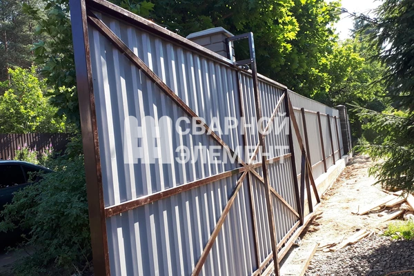 • Каркас забора: Лаги 40*20*1,5 мм, -2 шт на пролет, Столбы 60*60*2 мм, пролет 2,5 метра.