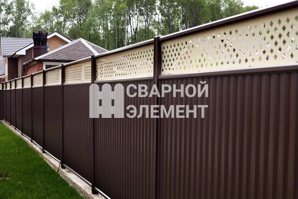 Модульные ограждения из профнастила пользуются особым спросом. Популярность заборов такого типа объясняется длительным сроком эксплуатации, высокими показателями прочности, защитными качествами и внешней привлекательностью. При грамотно выбранном оттенке, модульное ограждение будет выглядеть гармонично на любом участке, независимо от его особенностей. Главное качество сборных конструкций – высокая скорость установки. Модульный забор – это отдельные комплектующие, собирающиеся в общую конструкцию. В набор, помимо рамочных секций из профлиста, входят специальные крепления и опорные стойки. От высоты заборного профнастила, зависит прочность конструкции и ее стойкость к погодным явлениям.