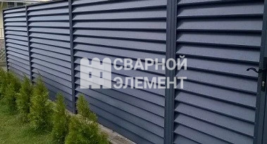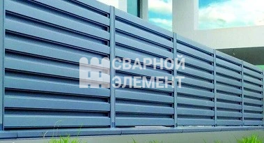 Визуально забор жалюзи металлические очень напоминает горизонтальные шторы-жалюзи. Если рассматривать фото такого ограждения, то можно заметить, что на небольшом удалении оно кажется полностью герметичным. Однако, рассматривая штакетник вблизи, можно заметить наличие пространства между ламелями. Этим и объясняются многие достоинства забора, среди которых визуальная привлекательность и обеспечение циркуляции воздушных масс.